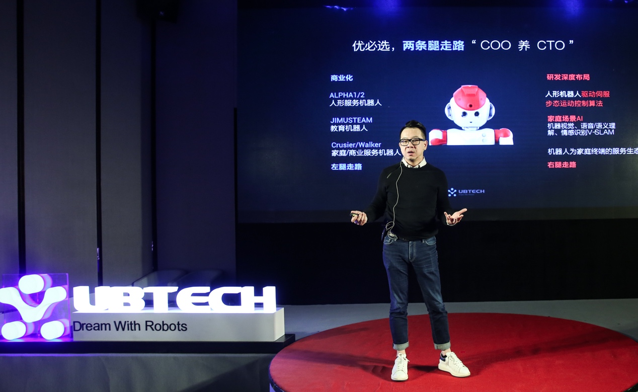 深圳市优必选科技有限公司是中国首家致力于商业化人形智能机器人的研发、制造和销售为一体的高科技企业,是人形机器人走出实验室、步入家庭的推动者和倡导者。已拥有包括博士、硕士在内的国内顶尖机器人专家团队,集智能机器人软件应用和硬件开发为一体,已获得几十项国家技术专利:发明专利、实用新型专利、外观设计专利、软件著作权专利等。优必选长期以来与中国科学院、上海交大、哈工大等国内顶尖高校及研究机构保持着紧密作关系。在人形机器人科研与开发领域与日韩欧美等世界为数不多的一流机器人公司同处于全球顶尖水平。
