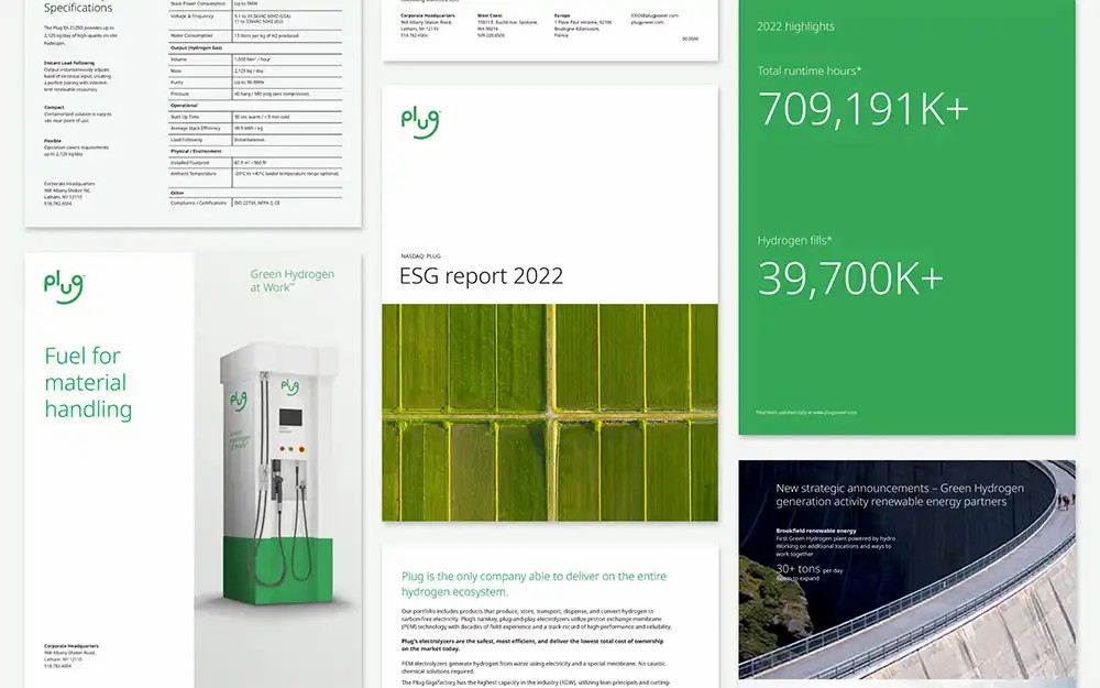 据悉,Plug Power的新品牌形象设计有由知名品牌创意咨询公司 Lippincott 开发。 新的品牌强调了 Plug Power 致力于解决两个相互关联的全球性问题:帮助企业更明智地使用能源,以及在提高能源安全的同时让地球摆脱化石燃料。Plug相信绿色氢将引领全球电气化,并成为清洁能源未来的重要组成部分。