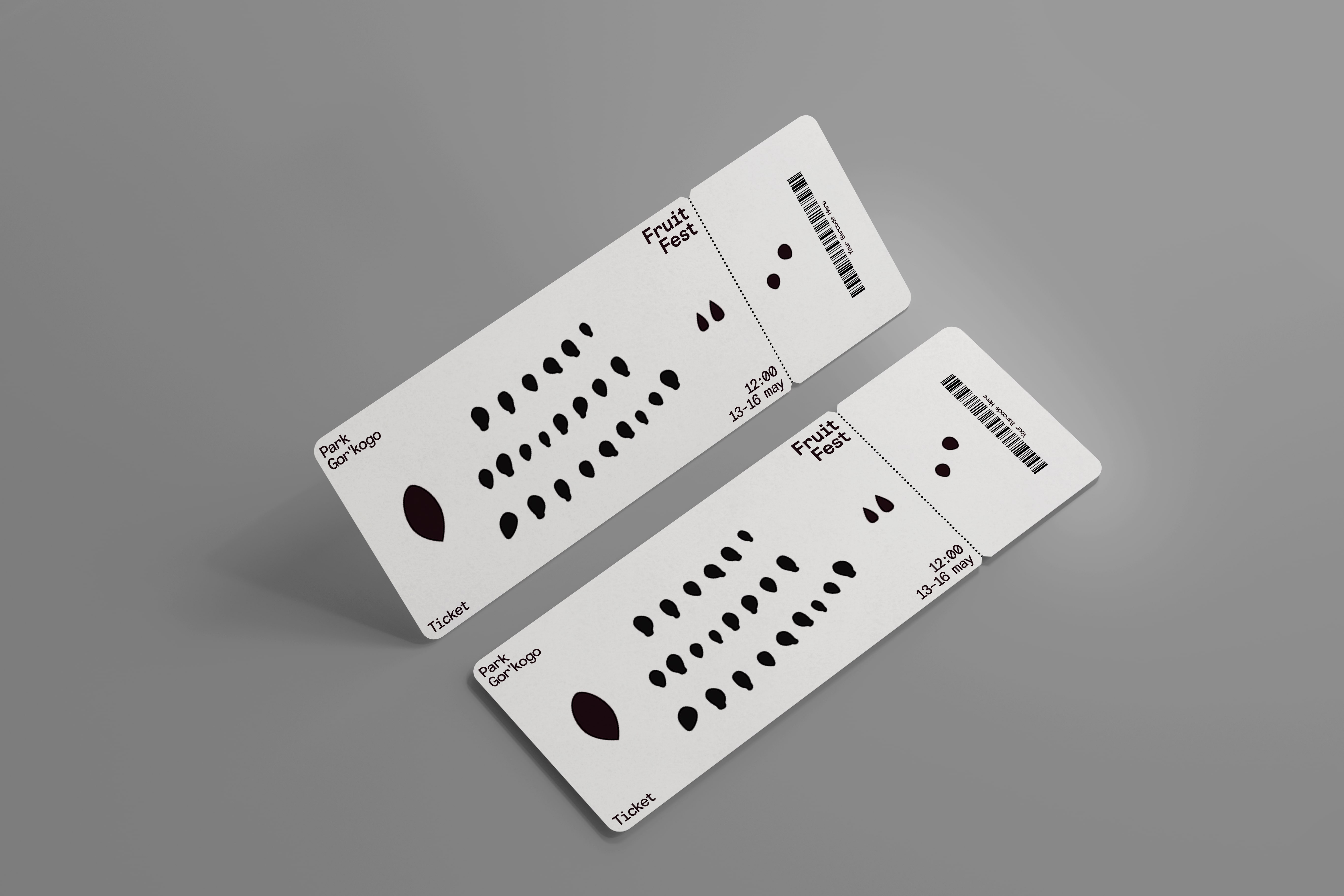 Fruit Fest 的概念是横幅、海报、门票、手镯、产品包装和商品以服装和配饰形式的视觉设计。我使用了黑白的极简设计。这破坏了潜在客人的期望:水果节以鲜艳的色彩呈现。不是关注果实的形状和颜色,而是种子的轮廓在前景中,将来可能会在地下发芽并长出新芽。所以设计反映了观众应该感兴趣的周期性。