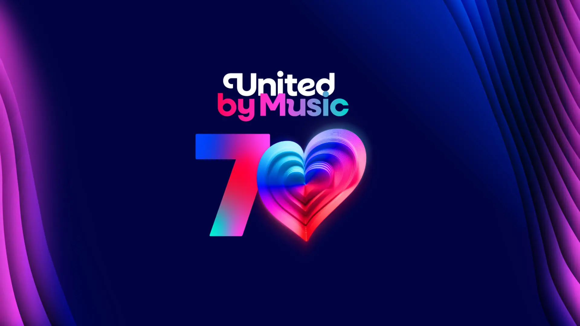 70周年纪念标志在以往标志基础上进行简化,保留了赛事经典的心形图案,同时为“音乐汇聚”口号赋予了专属视觉识别。作为“70”视觉形象的核心部分,经典心形图案升级为全新的“变色龙之心”。这颗“变色龙之心”在赛事举办期间将以3D形式呈现,由70层结构组成,且具备图形适配能力,可根据国家、艺术家等不同元素调整形态。欧洲广播联盟表示,“变色龙之心”既能展现主办国的特色、表演者的个性或特定主题,又能始终保留欧洲歌唱大赛的鲜明辨识度。