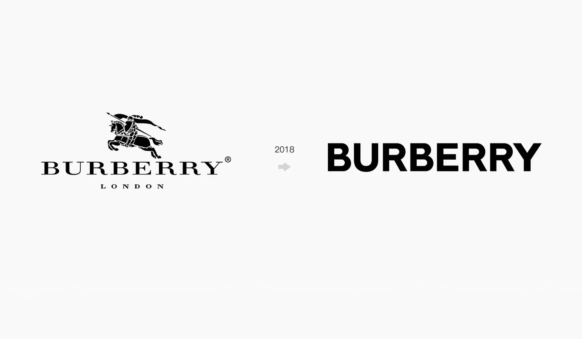在2018年8月,英国的服装和奢侈品牌博柏利(Burberry)在20年的品牌历史中首次进行了品牌重塑。这次重塑将他们长期使用的骑士图标和衬线体字标更换为了普通的大写无衬线字体,这一改变引发了广泛的热议和讨论。